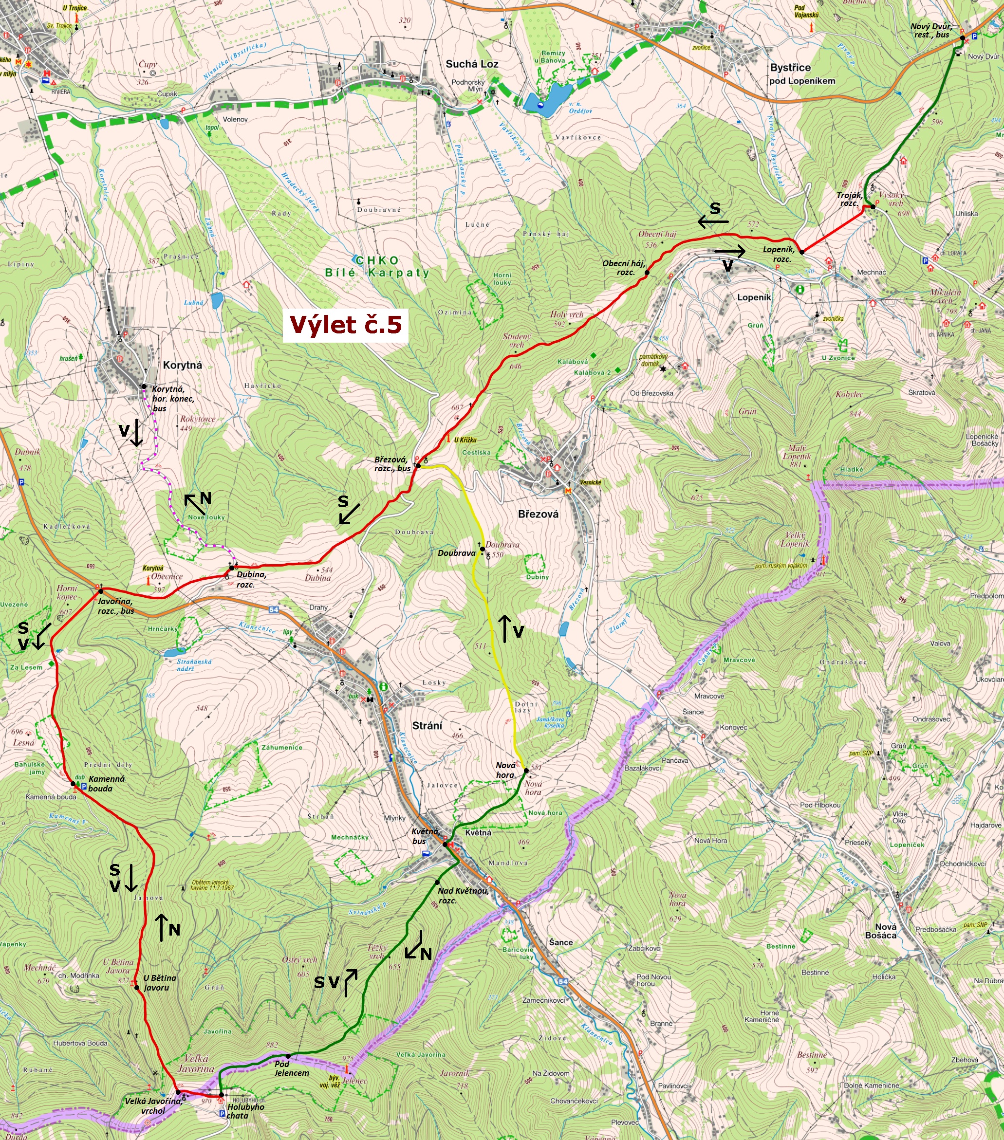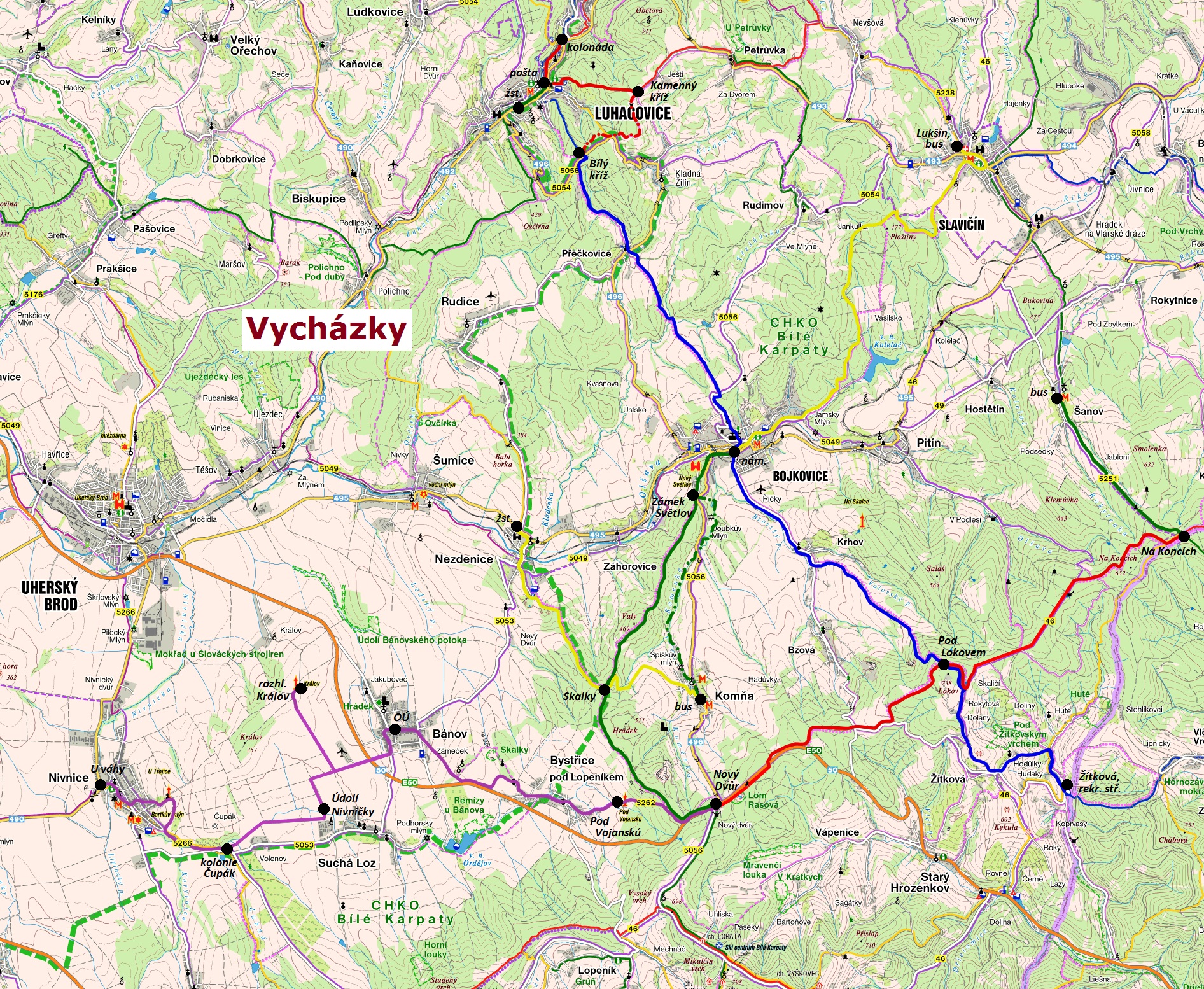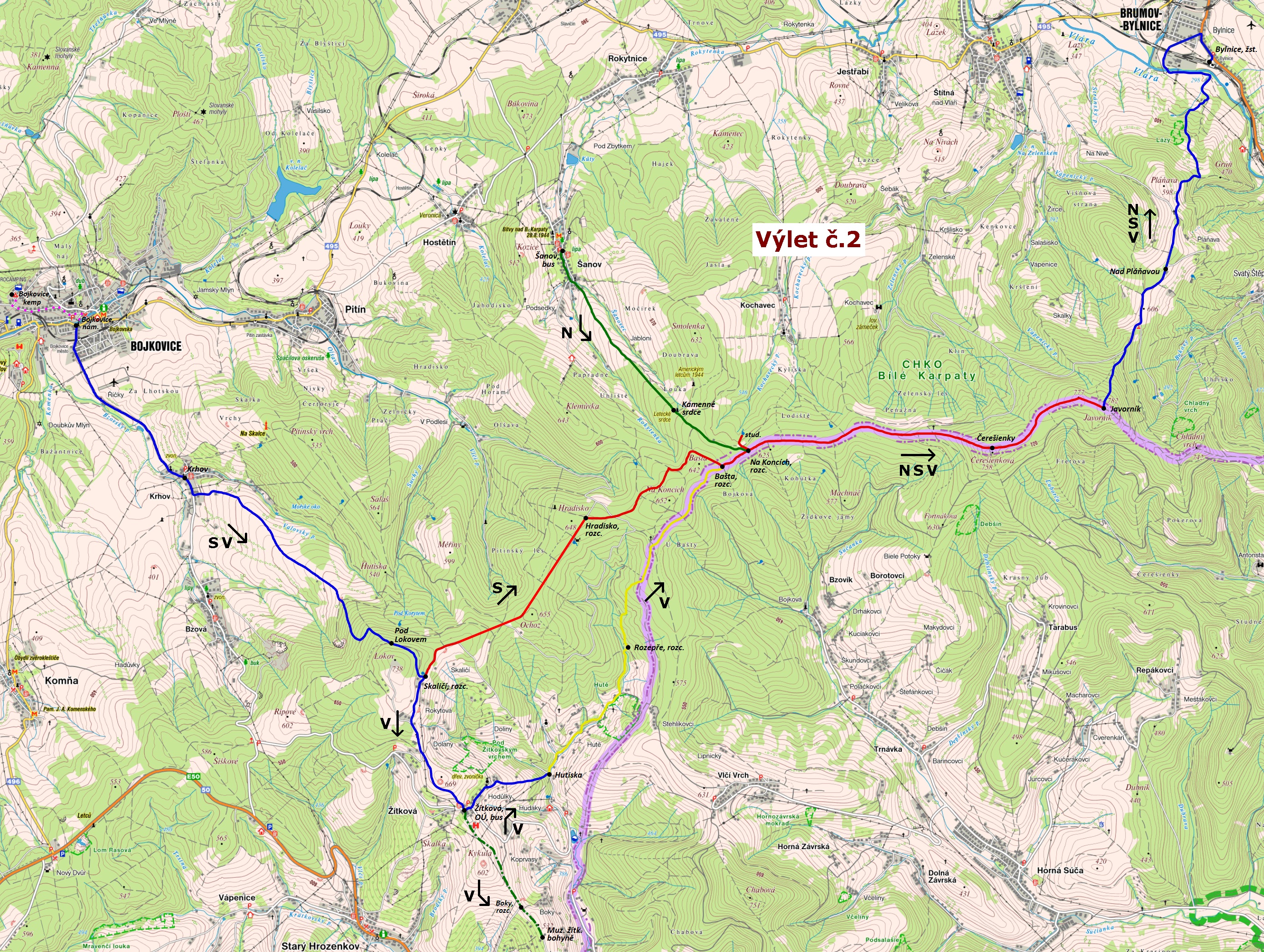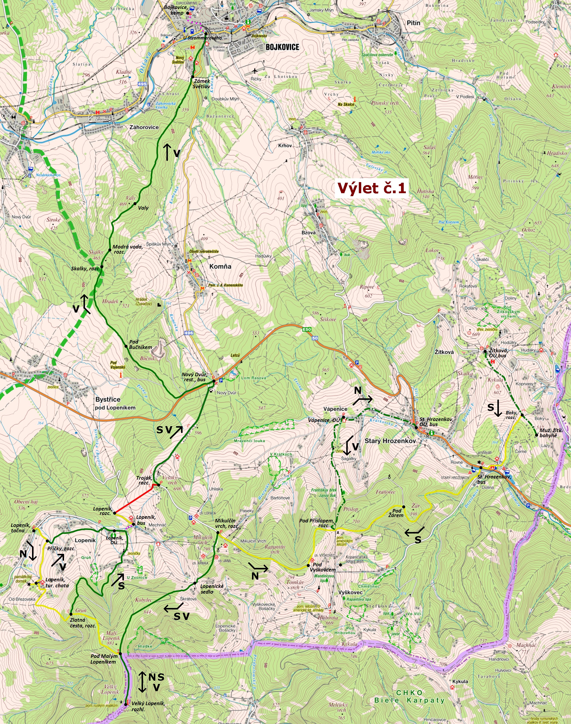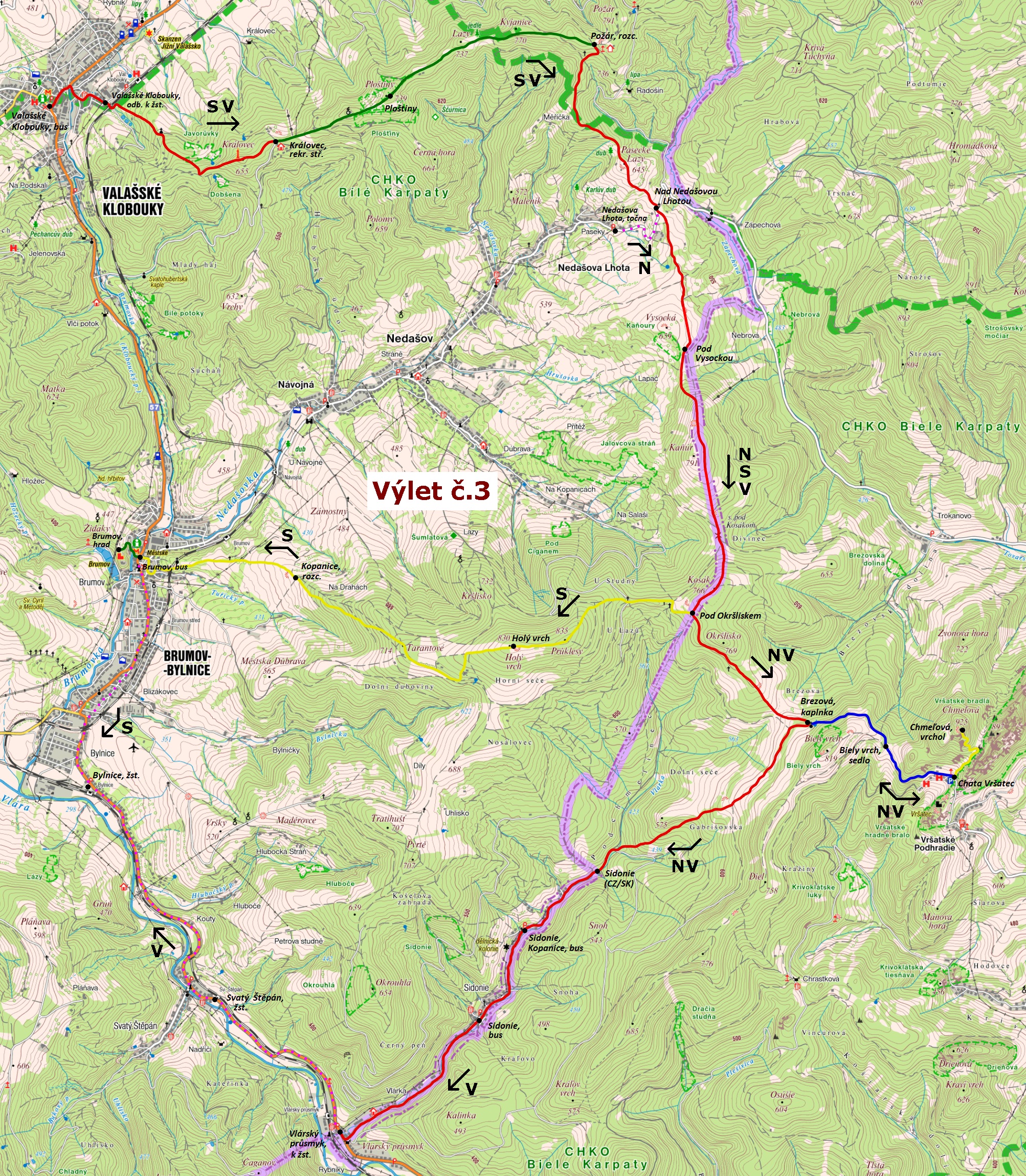 Bílé Karpaty 2018 - plánky tras výletů :