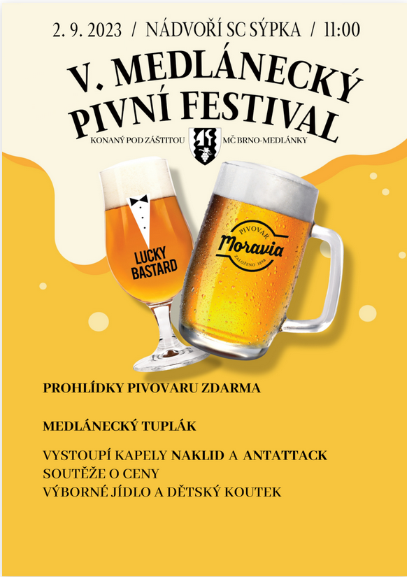| 2. září | Den turistiky v Medlánkách | Start: KC Sýpka - Brno Medlánky 6.30 - 11 hod Cíl: do 18 hod tamtéž nové trasy 5 - 48 km, živé kontroly s občerstvením |